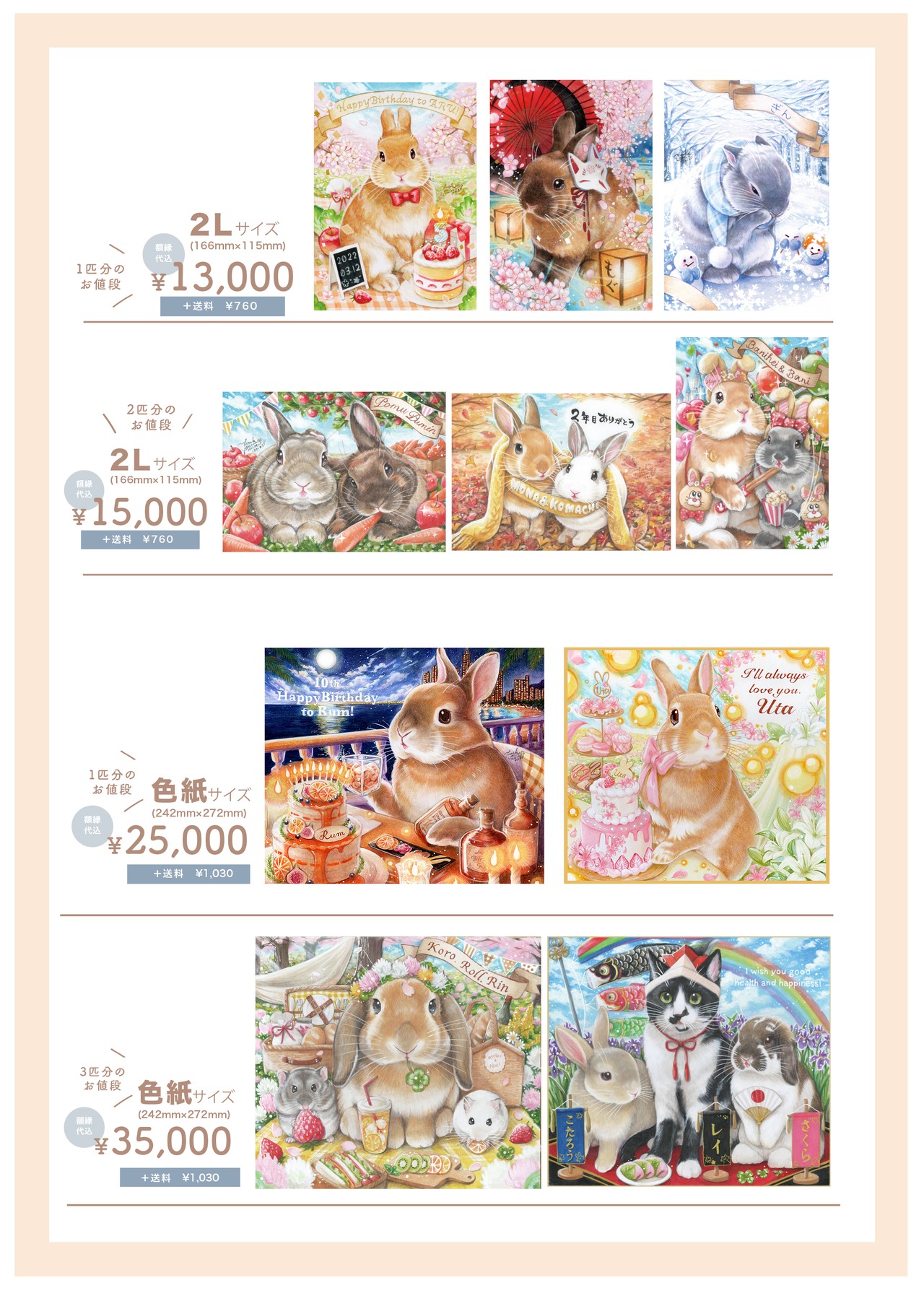 (販売価格は色紙サイズ1匹分の基本料金になってます)